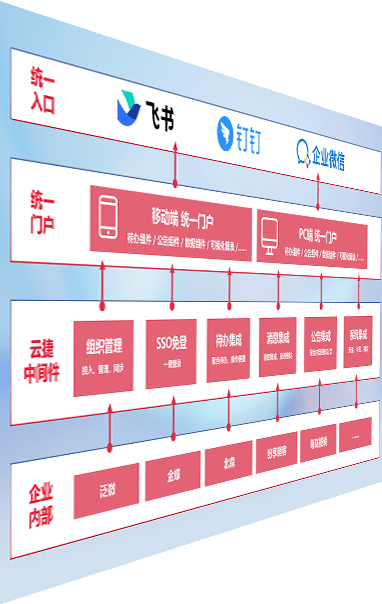 对协作平台提供支持服务,,,支持企业应用与协作平台对接,,,包含组织同步、、、、消息集成、、、、待办集成等。。支持目前主流的协作平台:钉钉、、、企微和飞书。。